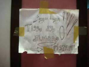 BERITA-BERITA TENTANG BAHASA Tidak Hanya Lidah Yang Bisa Terpeleset, Tanganpun Juga Bisa oleh pusatbahasaalazhar • Februari 12, 2011 • 0 Comments Di bawah ini ada beberapa gambar yang mungkin dapat memberikan pelajaran bagi kita betapa memalukannya terpeleset tangan alias slip of the hand….:). Penulisnya perlu buka kamus lagi deh….he..he.. Beri peringkat:Bagikan ini: Klik untuk membagikan di Facebook(Membuka di jendela yang baru) Facebook Klik untuk berbagi di X(Membuka di jendela yang baru) X Suka Memuat... Terkait